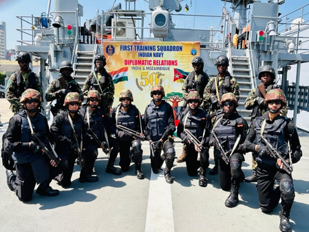 Delhi- Joint training to enhance operational interoperability remained the focus of Indian Navy (1TS) four-day port call to Maputo, Mozambique, an official said on Sunday. Demonstrating enduring maritime friendship, the 1TS, comprising INS Tir, INS Shardul, INS Sujata, and ICGS Sarathi, concluded its port visit to Maputo on Friday, the official said.During the deployment, 1TS engaged in a series of joint training to enhance operational interoperability with the Mozambique Navy.Activities included Joint Diving Operations, Firefighting, VBSS Ops and Bridge Machinery Control integration drills. Cross-training visit of Indian Navy trainees to Marine Commando School at Katembe, Sargent School at Boane, and the Army Practising School at Manhica fostered mutual understanding and cooperation. Sea riders of the Mozambique Navy embarked onboard 1TS ships for joint EEZ surveillance.Capt Tijo K Joseph, Senior Officer of 1TS, along with Commanding Officers of visiting ships, paid courtesy calls to Rear Admiral Eugenio Dias Da Silva Muatuca, Chief of the Mozambique Navy; Maj Gen Ezequiel Muianga, Inspector of FADM; Col Candido Jose Tirano, Commandant of Maputo Air Force Base.These high-level interactions underscored the growing defence cooperation between the two nations, said an official statement.Community outreach formed a vital component of the deployment. More than 1,000 school children toured the ships, gaining insights into operational capabilities of the Indian Navy, it said.A medical camp was set up at Naval Headquarters Mozambique and local hospital at Maputo. More than 100 patients were provided medical care and an awareness campaign on prevention of critical disease, emergency response and first aid was conducted, it said.Joint Yoga sessions and a friendly futsal match further strengthened camaraderie between the two Navies, it said.As 1TS sets sail for Mombasa, the visit leaves behind strengthened bilateral ties and a renewed commitment to peace, stability, and shared prosperity in the Indian Ocean Region. The port call reinforces India’s maritime partnership with African nations.The port call reaffirmed the Indian Navy’s commitment to enhanced maritime partnership through joint training and capacity building, guided by the vision of MAHASAGAR – Mutual and Holistic Advancement for Security and Growth Across Regions.–IANSrch/p
